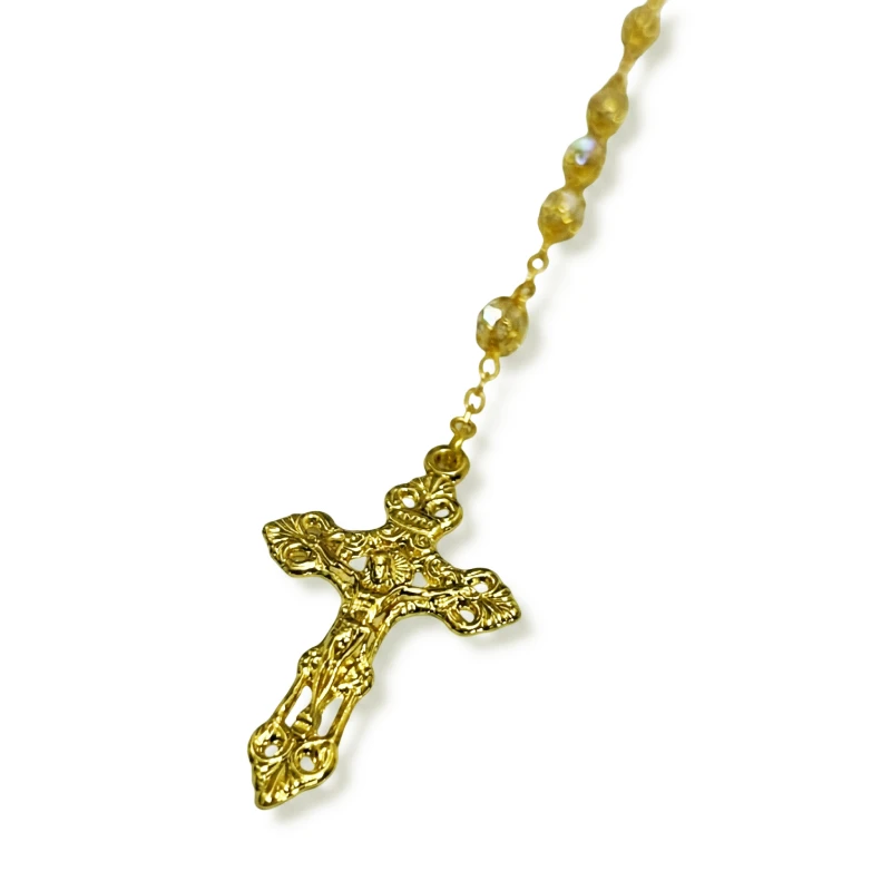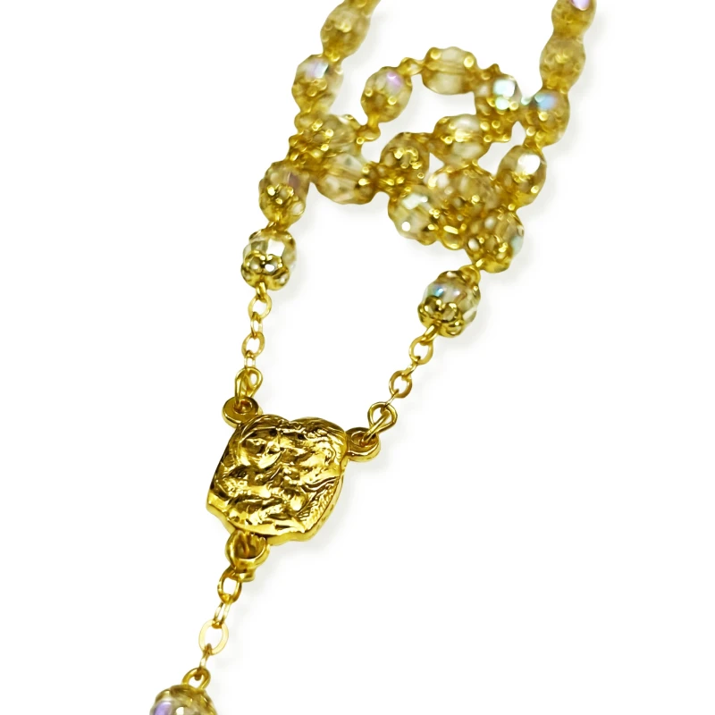 | Product Name | Gold Tone Catholic Rosary with Faceted Clear Crystal Beads |