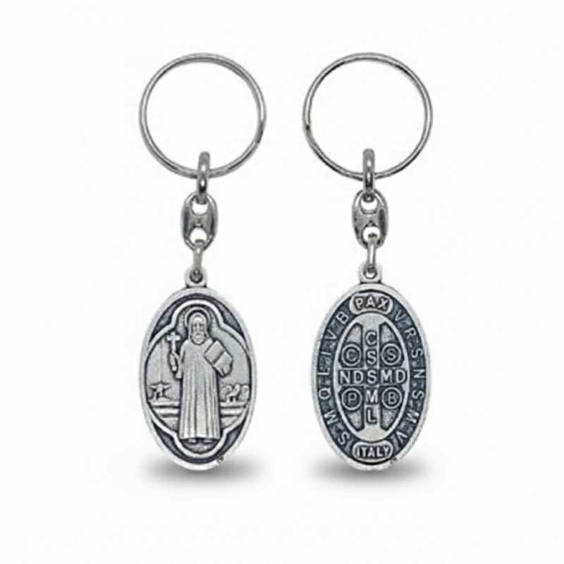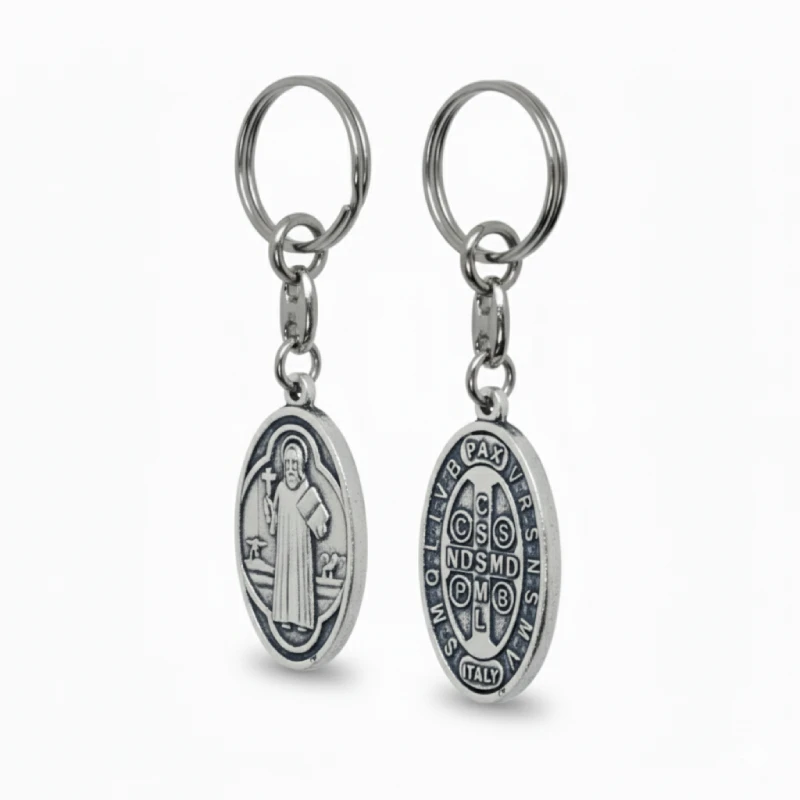 Common Keywords Saint Benedict Medal Keychain, Catholic Keychain, St. Benedict keychain Italy, Religious Keychain, Chaveiro São Bento, Italian Catholic Gift.